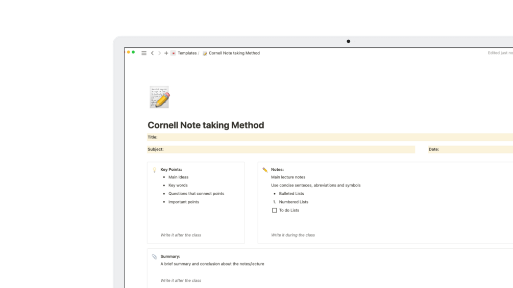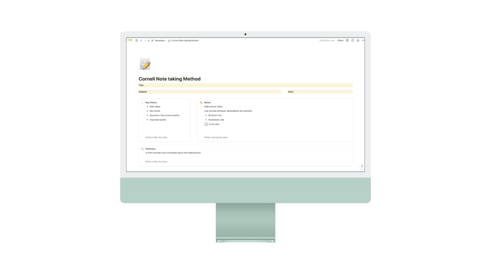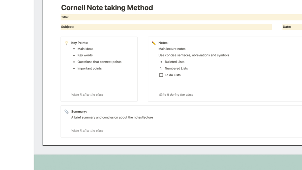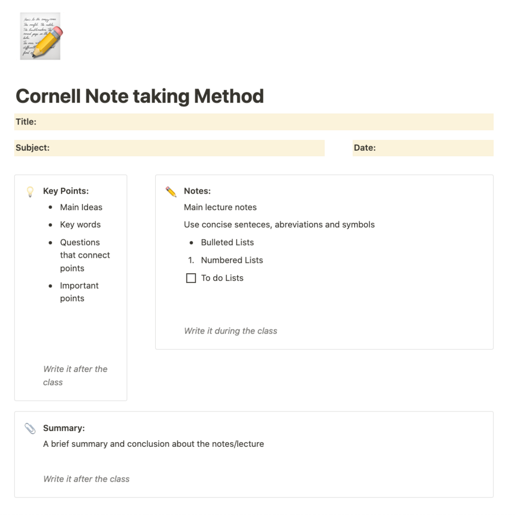 Probably you know about the famous Cornell Note Taking Method, so here you can have a free template to take notes in Notion with this method.